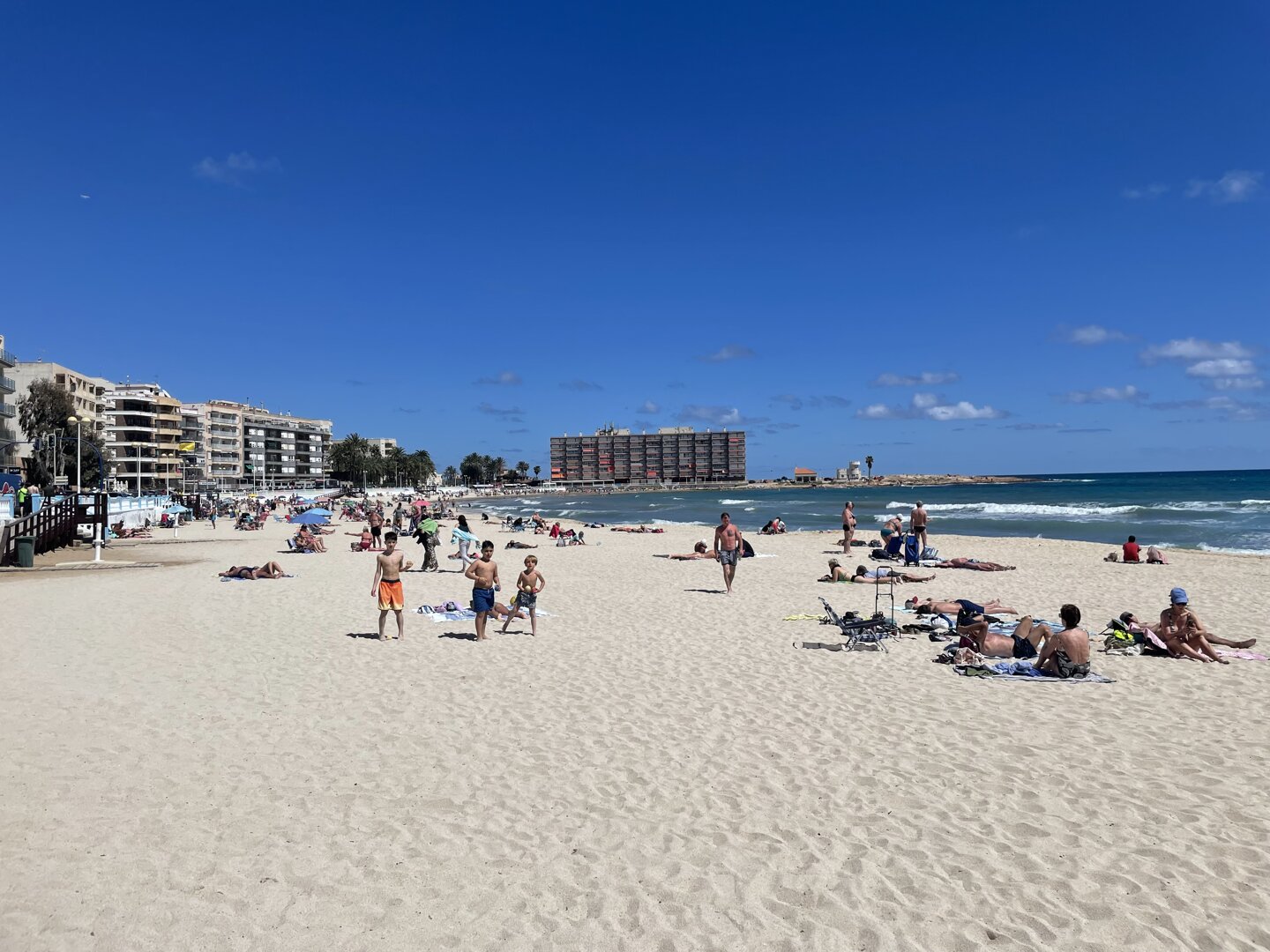 Apartament w1. linii brzegowej w Torrevieja przy piaszczystej Plaży Los Locos. Znajduje się na kameralnym prestiżowym osiedlu w otoczeniu parku palmowego. Goście mają bezpłatny dostęp do 2 basenów z ratownikami, 2 kortów tenisowych i placu zabaw. Idealna